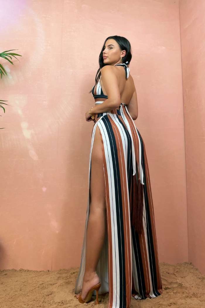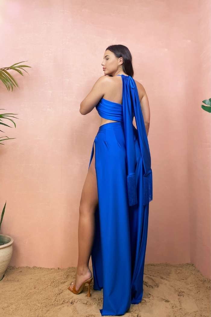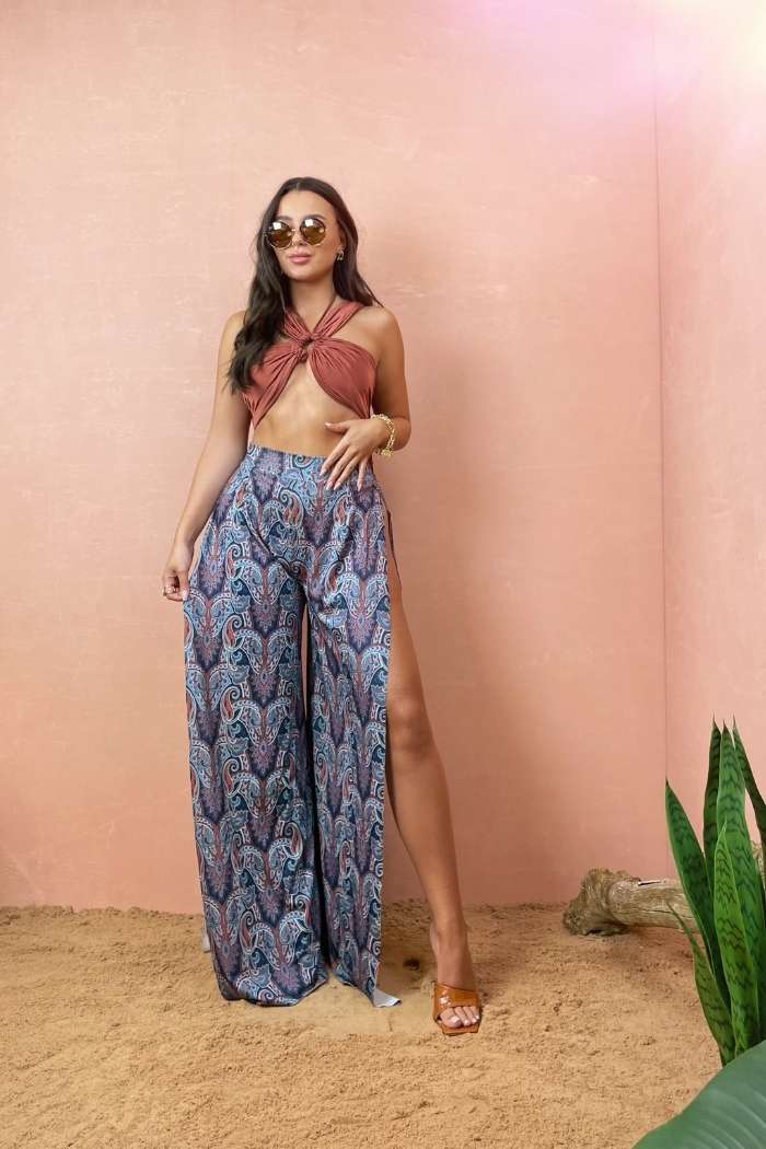 The ‘Charlotte’ trousers are the perfect lightweight holiday staple. Featuring a flattering high waisted fit and wide legs, with super high thigh splits up each leg. For those a little less daring, remember we can alter the splits to your liking or remove them completely.